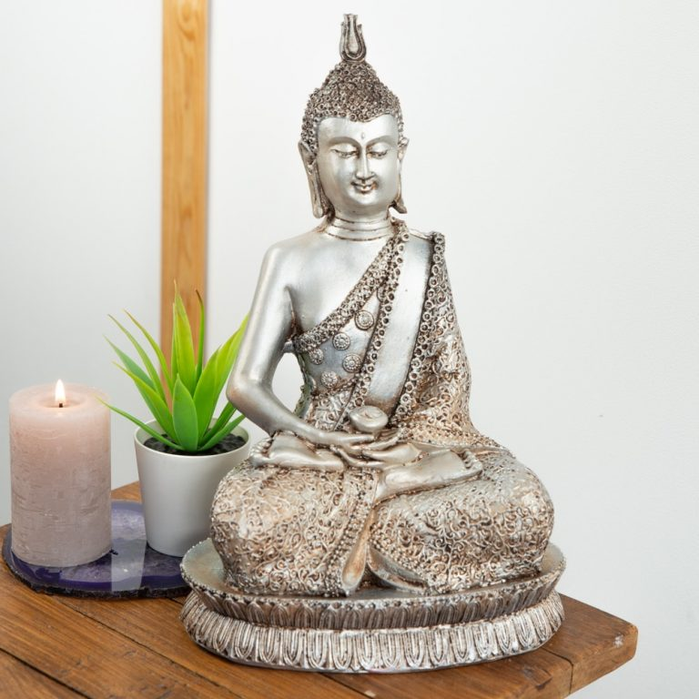 Thaise Boeddha Mediterend Zilver & Brons -28 cm