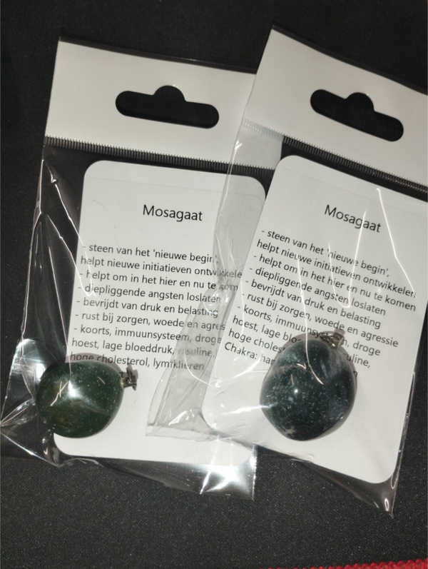 Deze Mosagaat edelsteenhanger (±1,5–3 cm) met gelijmd metalen oogje is een prachtig natuurproduct dat symbool staat voor het nieuwe begin. Mosagaat helpt bij het ontwikkelen van nieuwe initiatieven, brengt je in het hier en nu, en ondersteunt het loslaten van diepliggende angsten.