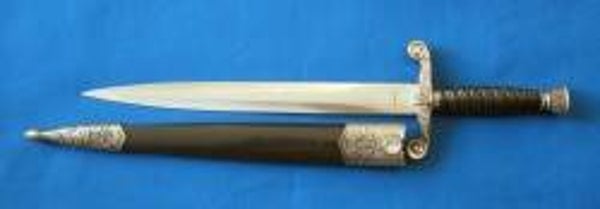 Dolk met handvat Irminsul met adelaar op de pareerstang, met schede, handvat van Zamack (zinklegering), lemmet van staal. Alleen beschikbaar voor volwassenen.