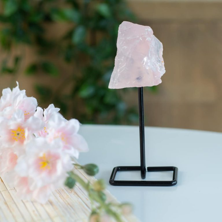 Met een hoogte van 12 cm is deze rozenkwarts op metalen standaard een perfect formaat voor op een tafel, plank of nachtkastje. Het kan dienen als een betekenisvol decoratief stuk in je slaapkamer, woonkamer of elke andere ruimte waar je een vleugje liefde en positieve energie wilt brengen.