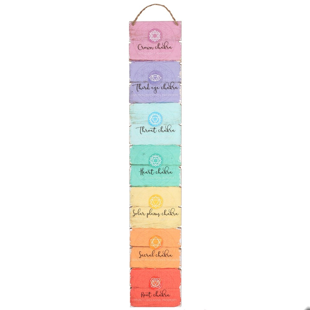 Breng kleur, energie en spirituele symboliek in je interieur met deze houten wandplaat die de zeven chakra’s weergeeft, compleet met hun kleur, symbool en betekenis. Voorzien van een stevig touw om eenvoudig op te hangen, is dit decorstuk ideaal voor yogaruimtes, meditatieruimtes of gewoon als inspirerende wanddecoratie.