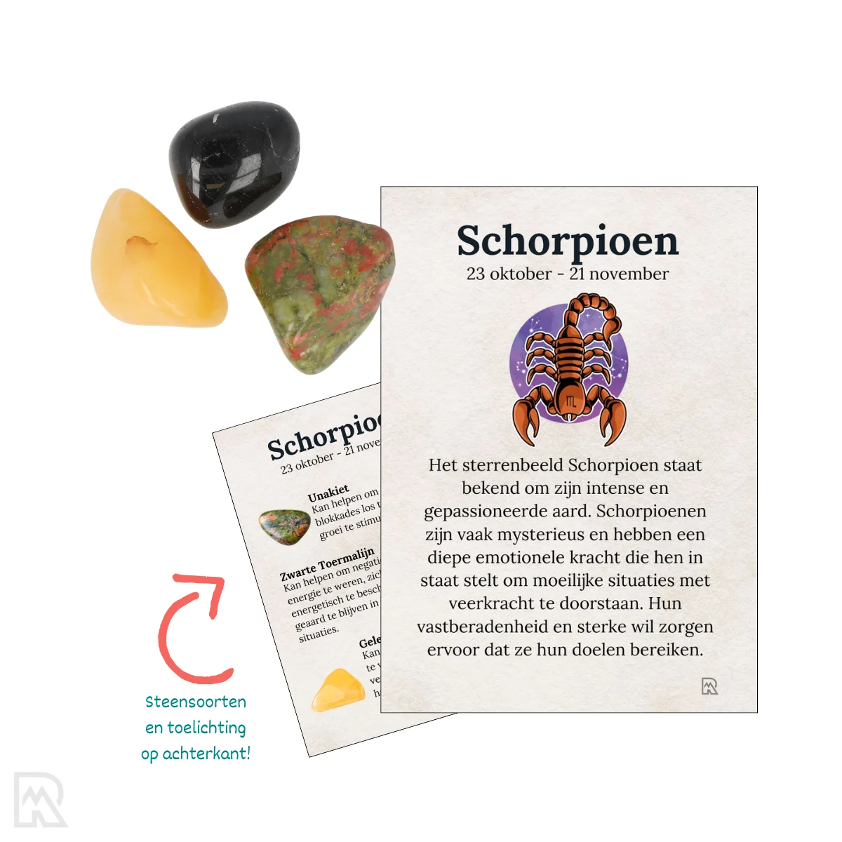 Inclusief klein kaartje met eigenschappen van het sterrenbeeld en de stenen.