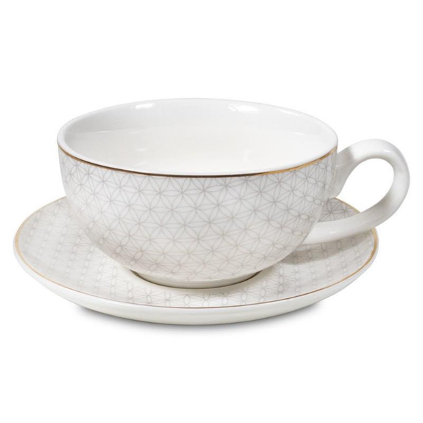 Deze Tea for One is vervaardigd uit hoogwaardig Bone China porselein, een van de sterkste en meest verfijnde porseleinsoorten ter wereld. Door het mengen van kaolien, veldspaat en kwarts met minimaal 35% beenderas ontstaat een uitzonderlijk stevig, licht en ivoorkleurig materiaal. Dit luxe porselein wordt gebakken op ongeveer 1250°C, wat zorgt voor een duurzame en elegante afwerking.