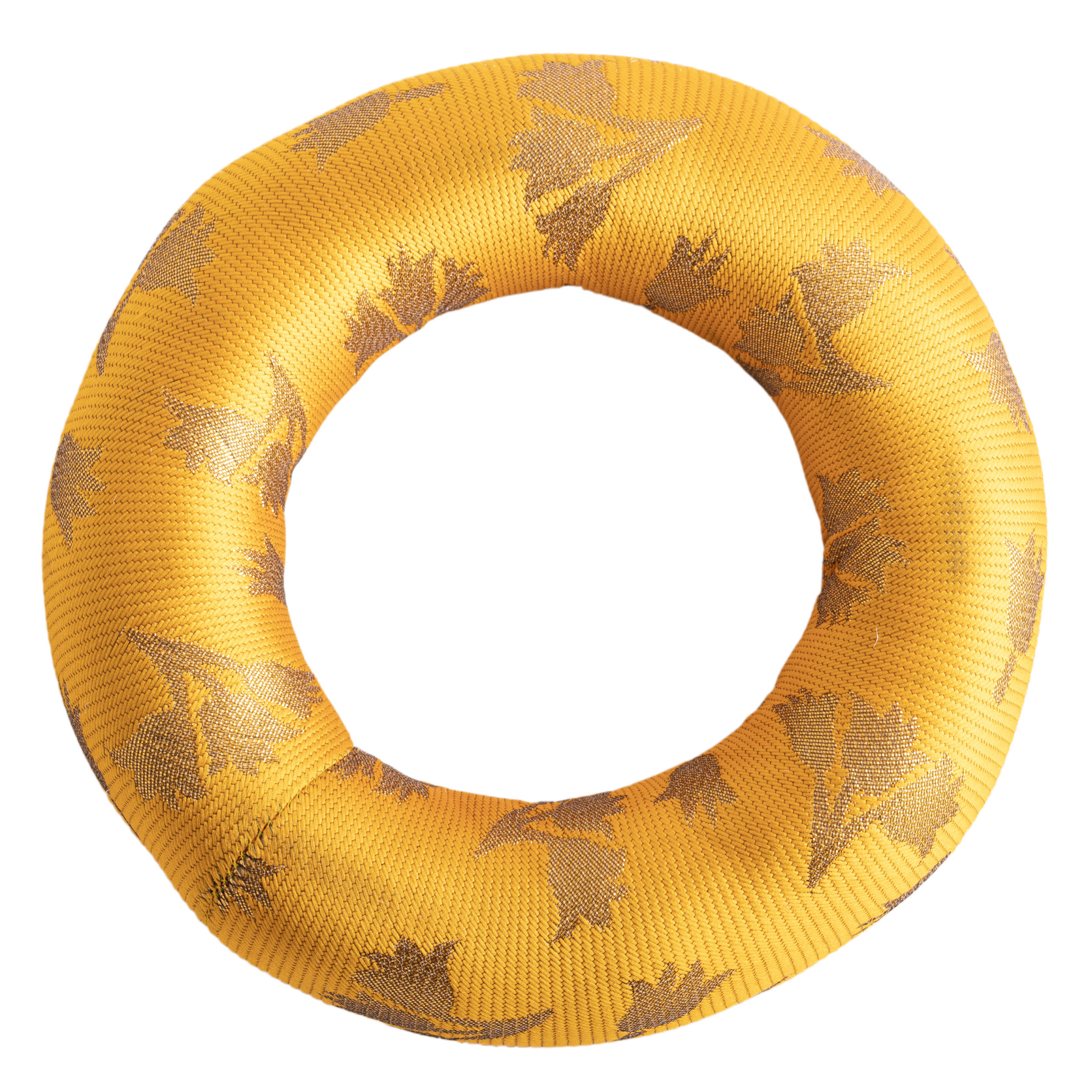 Ondersteun je klankschaal tijdens meditatie en sound healing met deze Singing Bowl Donut van 16 cm in geel. Het stevige katoenen kussen in donutvorm zorgt voor een stabiele rustplaats, terwijl het traditionele Nepalese ontwerp met gouden borduursels een elegant en spiritueel accent toevoegt aan je ruimte. Ideaal voor meditatie, geluidstherapie of als decoratief element in huis.
