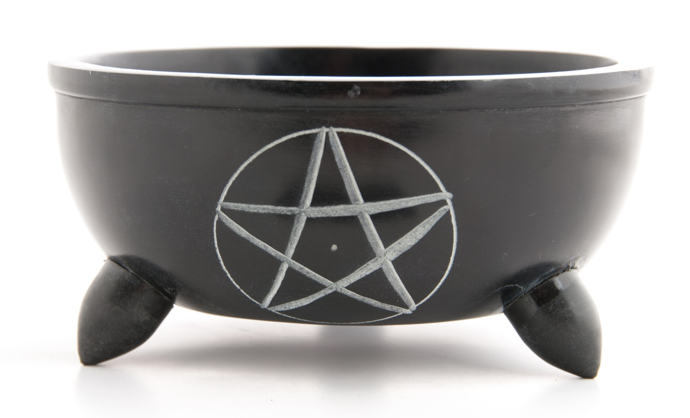 Deze grote speksteenschaal met pentagram (Ø 12 cm) is een handgemaakt magisch accessoire voor rituelen en meditatie. Gemaakt van massief speksteen en voorzien van een zorgvuldig gegraveerd pentagram, is deze schaal ideaal voor het vullen met zand of kolen bij het branden van wierook. De stevige driepotige vorm geeft stabiliteit en voegt een authentiek spiritueel accent toe aan je heilige ruimte.