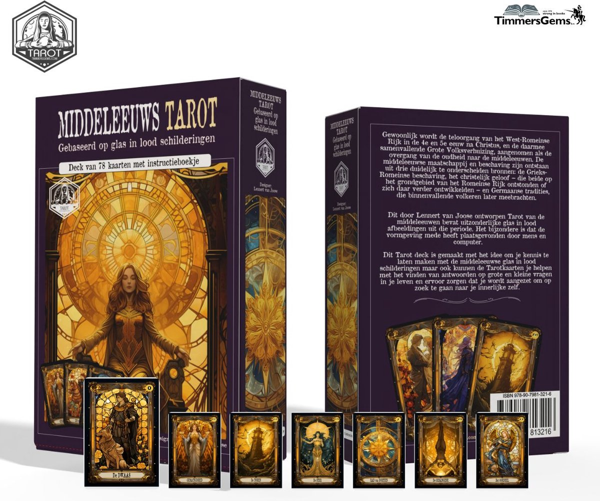 Dit door Lennert van Joose ontworpen Tarot van de middeleeuwen bevat uitzonderlijke glas in lood afbeeldingen uit die periode. Het bijzondere is dat de vormgeving mede heeft plaatsgevonden door mens en computer. Dit Tarot deck is gemaakt met het idee om je kennis te laten maken met de middeleeuwse glas in lood schilderingen maar ook kunnen de Tarotkaarten je helpen met het vinden van antwoorden op grote en kleine vragen in je leven en ervoor zorgen dat je wordt aangezet om op zoek te gaan naar je innerlijke zelf.