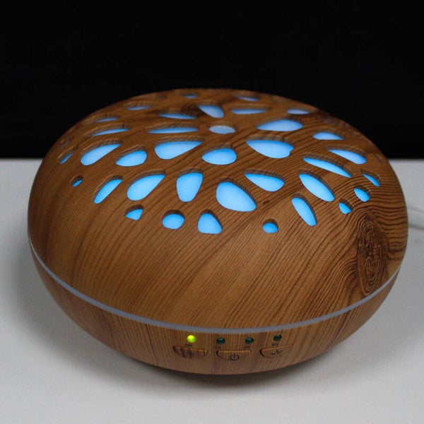 Handige aroma diffuser en vernevelaar om essentiele olien te verdampen met een mist van waterdamp. daarbij kan deze diffuser verschillende kleuren sfeervolle verlichting geven en ishet ook een luchtbevochtiger.