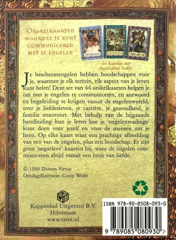 Je beschermengelen hebben boodschappen voor je, waarmee je elke terrein, elk aspect van je leven kunt helen! Deze set van 44 orakelkaarten helpen je om je engelen te communiceren, en antwoord en begeleiding te krijgen vanuit de engelenwereld, over je liefdesleven, je carriere, je gezondheid, je familie enzovoort. Met behulp van de bijgaande handleiding kun je leren hoer je 'engelenreadings' kunt doen voor jezelf en voor mensen om je heen. Op elke kaart staat een prachtige afbeelding van een van de engelen, plus een boodschap. Er zijn geen 'negatieve' kaarten bij, want de engelen communiceren altijd vanuit een bron van liefde.