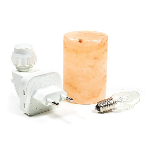 Nachtlampje van kristalzout, geeft een warme gloed en draagt bij aan een gezonde atmosfeer in de slaapkamer. Inclusief gloeilamp (E14 - 7 Watt) en stopcontactstekker (220-230 Volt).