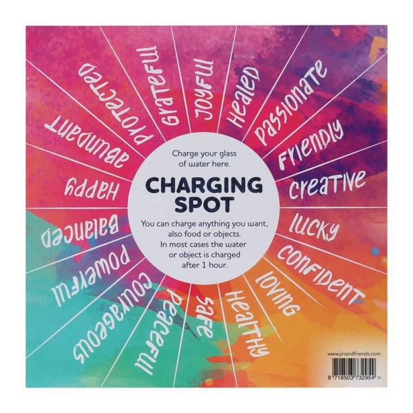 Masuru Emoto was een internationaal bekende Japanse wetenschapper die aantoonde dat onze woorden en gedachtes de moleculen van water positief kunnen beïnvloeden en zo ook onze gezondheid. Dit kan je zelf doen met de Energy Charging Card. De 18 positieve woorden zijn met zorg geselecteerd in een bepaalde volgorde. Je kan alles ‘opladen’ wat je wilt, ook eten of andere voorwerpen. In de meeste gevallen is het water of voorwerp opgeladen na 1 uur.