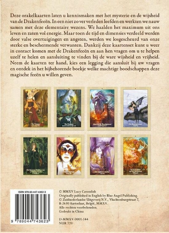 Deze orakelkaarten laten u kennismaken met het mysterie en de wijsheid van de Drakenfeeën. In een niet zo ver verleden leefden en werkten we nauw samen met deze elementaire wezens. We haalden het maximum uit ons leven en zaten vol energie. Maar toen de tijd en dimensies verdeeld werden door valse overtuigingen en angsten, werden we losgescheurd van onze sterke en beschermende verwanten. Dankzij deze kaartenset kunt u weer in contact komen met de Drakenfeeën en aan hen vragen om u te helpen uzelf te helen en aansluiting te vinden bij de ware wijsheid en vrijheid. Neem de kaarten ter hand, kies een legging die aansluit bij uw vragen en ontdek in het bijbehorende boekje welke machtige boodschappen deze magische feeën u willen geven.