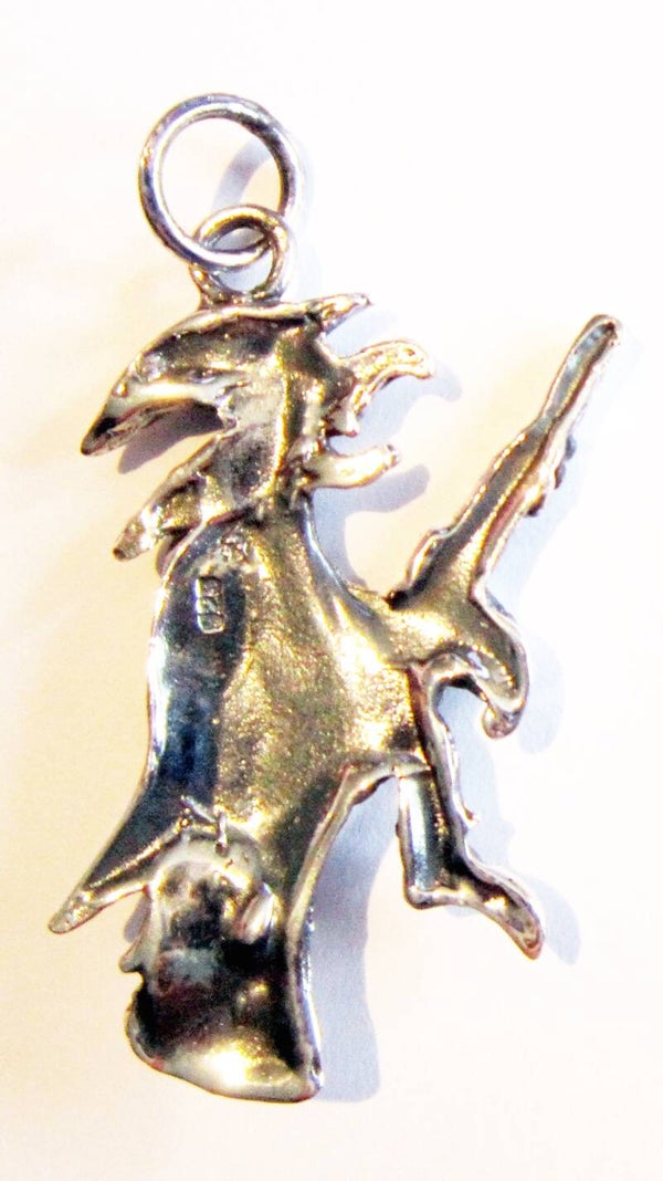 Zilveren hanger vliegende heks gemaakt van 925 sterling zilver.